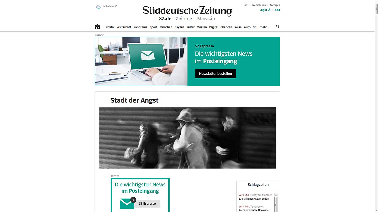 uBlock Origin deaktiviert: keine Werbung auf SZSpiegel.de scheint gerade offline zu sein, ja. Twitter ist voll mit Tweets dazu.