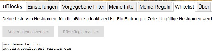 Mit aktiviertem uBlock Origin (Version 1.3.2) - offizielle Version, tritt folgendes Problem auf: