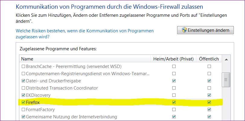 Nach dem Update heute auf die Version 36.0 sollte ich für die Firewall Häkchen machen bzw. raus nehmen.