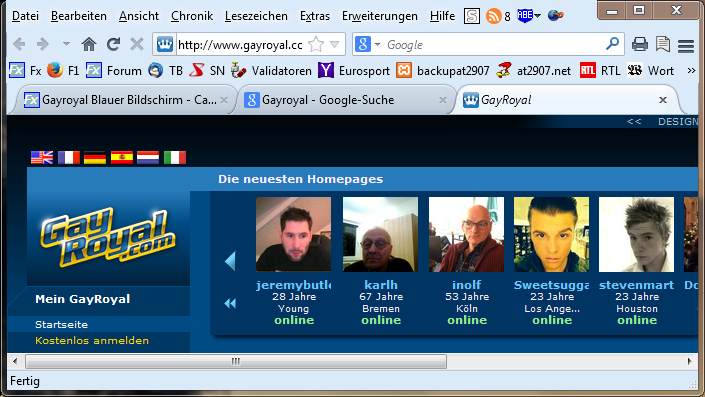 Seit dem Update auf FF36.01 wird die Gayroyal Seite nur noch in Blau Angezeigt. Ist nur mit Komplett Deaktivierten Adons Sichtbar. Nur die Adons die einen Neustart Erfordern stören also GM Videodownloader und Personas.