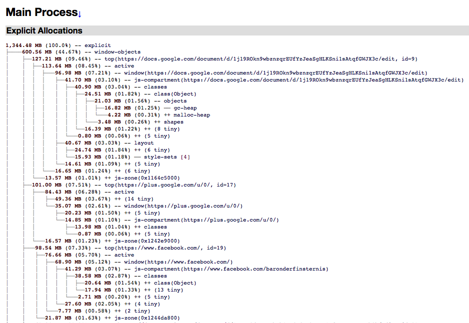 130 MB Speicher gehen alleine für mein offenes Google Drive-Dokument drauf und jeweils 100 MB für Google Plus und Facebook. Das sind alles extrem komplexe Anwendungen. Früher als man einfach "nur Webseiten", das auch ohne viele Bilder, betrachtet hat, war der Speicherverbrauch im Gesamten natürlich geringer.