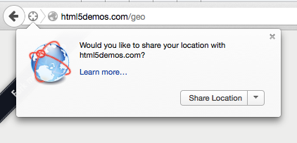 • Wenn die Geolocation API benutzt wird, bekommst du eine Meldung, die um Erlaubnis fragt.