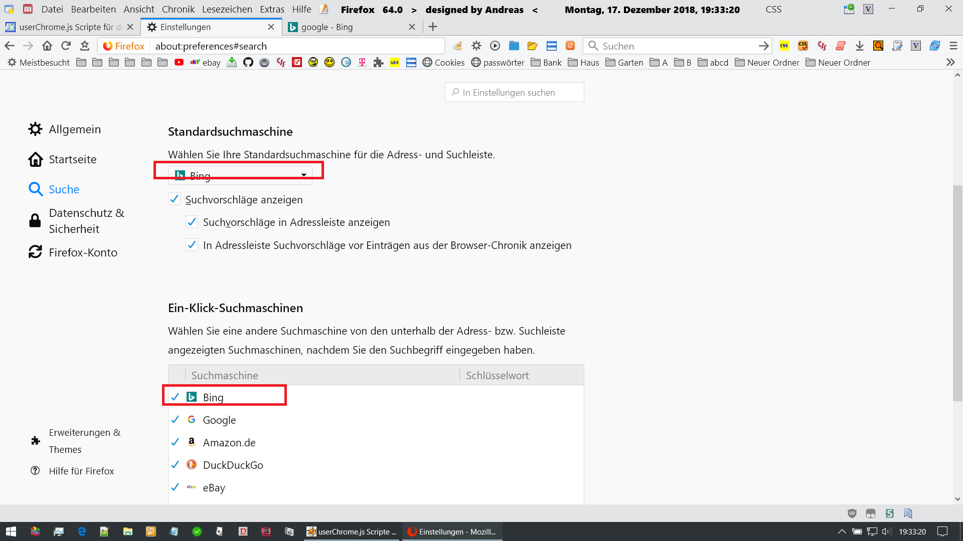 • Also, das Skript, ebenso wie ClearSearchTerm, leert zwar die Suchleiste, sobald man die Suche gestartet hat, doch leider sucht meine Suchleiste damit nur noch mit der Standardsuchmaschine. Zwar kann ich andere Suchmaschinen aus meiner Dropdwon-Liste auswählen und anklicken, doch dann sucht doch nur die Standardsuchmaschine, die bei mir Google ist.
