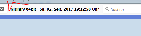Alles anzeigenfunction doDatUhrCallback() {try{doDatUhr();}catch(ex){} } function doDatUhr() { var days = ["So", "Mo", "Di", "Mi", "Do", "Fr", "Sa"]; var months = ["Jan", "Feb", "März", "Apr", "Mai", "Juni", "Juli", "Aug", "Sep", "Okt", "Nov", "Dez"]; window.setTimeout(doDatUhrCallback, 1000); var D = new Date(); var day = days[D.getDay()]; var month = months[D.getMonth()]; var year = D.getFullYear(); var hour = D.getHours(); var minute = D.getMinutes(); var second = D.getSeconds(); var date = day + ", " + (D.getDate() < 10 ? "0" +D.getDate() : D.getDate()) + ". " + month + ". " + year + " "; var time = (hour < 10 ? "0" +hour : hour) + ":" + (minute < 10 ? "0" +minute : minute) + ":" + (second < 10 ? "0" +second : second); var timestr = date + time + " Uhr" + " "; var text ="Nightly 64bit "; var status = document.getElementById("statusbar-clock-display"); status.setAttribute("value", text + timestr); if (hours < 6 || hours > 20) { status.setAttribute("style", "color: #ff0000;"); } else { status.setAttribute("style", "color: #000000;"); } status.setAttribute("style", clockstyle); } var ClockStatus = document.getElementById("urlbar-container"); var ClockLabel = document.createElement("label"); ClockLabel.setAttribute("id", "statusbar-clock-display"); ClockLabel.setAttribute("class", "statusbarpanel-text"); ClockLabel.setAttribute("style", "padding-top:7px; font-size: 14px; font-weight: bold;"); ClockStatus.parentNode.insertBefore(ClockLabel, ClockStatus.nextSibling); doDatUhr();