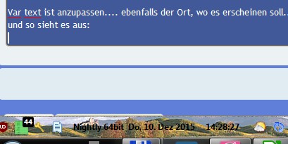 Var text ist anzupassen.... ebenfalls der Ort, wo es erscheinen soll.. hier ist es in der CTR-Addonbar angesiedelt...