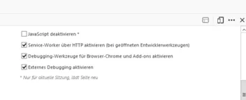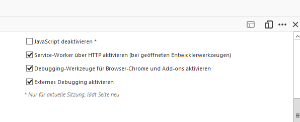 • So, Büssen, über Extras/Web-Entwickler den Inspektor aufrufen, dann unten rechts auf die drei Punkte klicken, Einstellungen auswählen, dann rechts ganz nach unten scrollen, und die im Bild erkennbaren Haken setzen. Alles schließen, Neustart, und probieren.