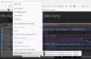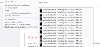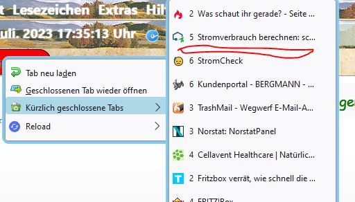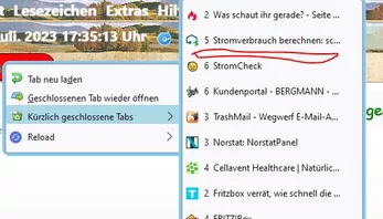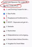 • "Alle Tabs wieder öffnen" aber noch vorhanden.