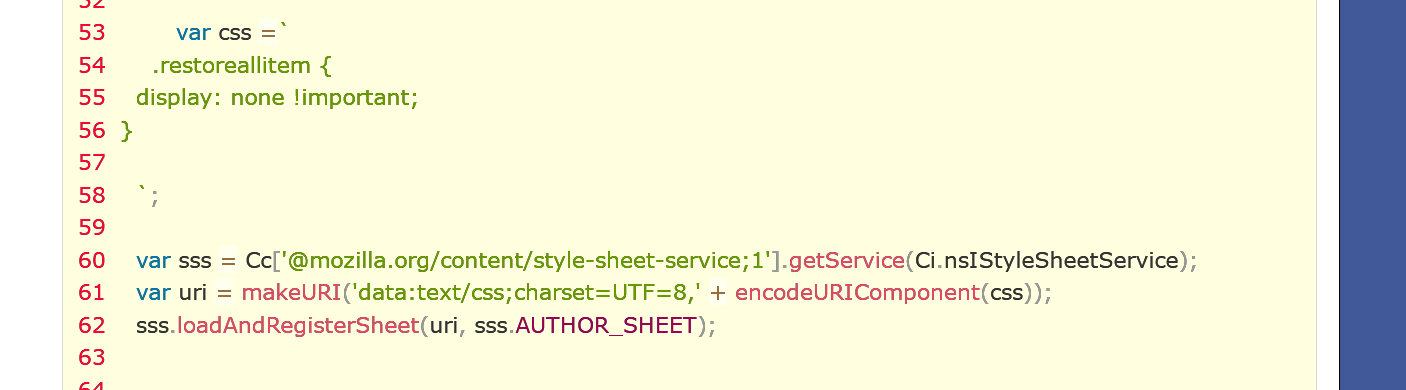 Aber dort nur, wenn das noch so Components.utils.import("resource:///modules/CustomizableUI.jsm"); eingetragen ist. ;)