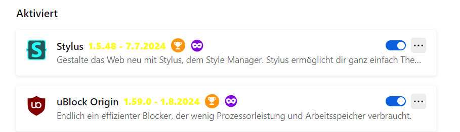 Das script fügt bei about:addons bei den Erweiterungen im jeweiligen Titel