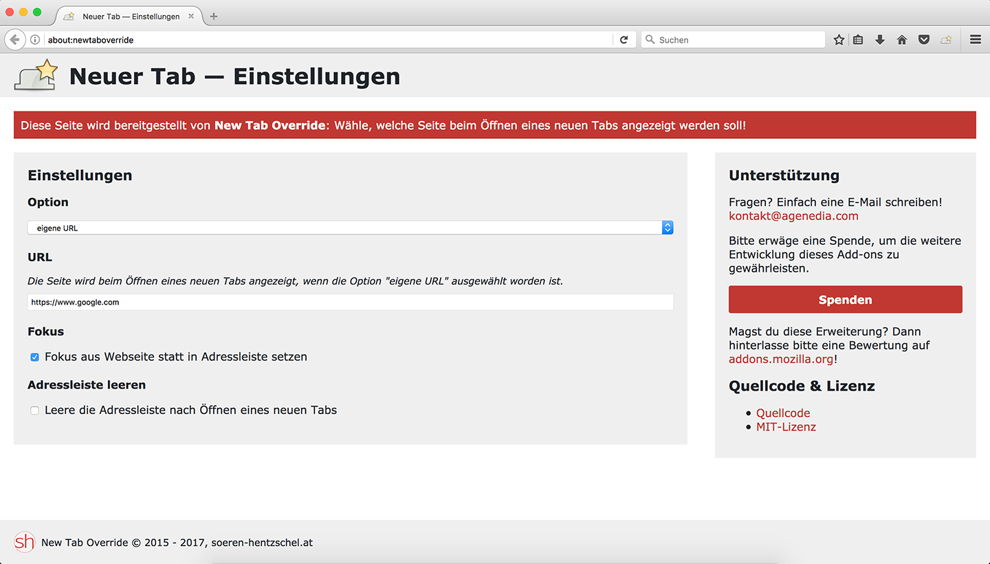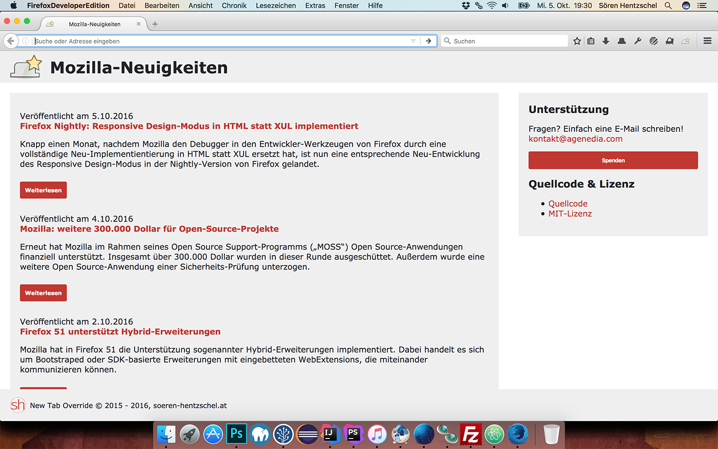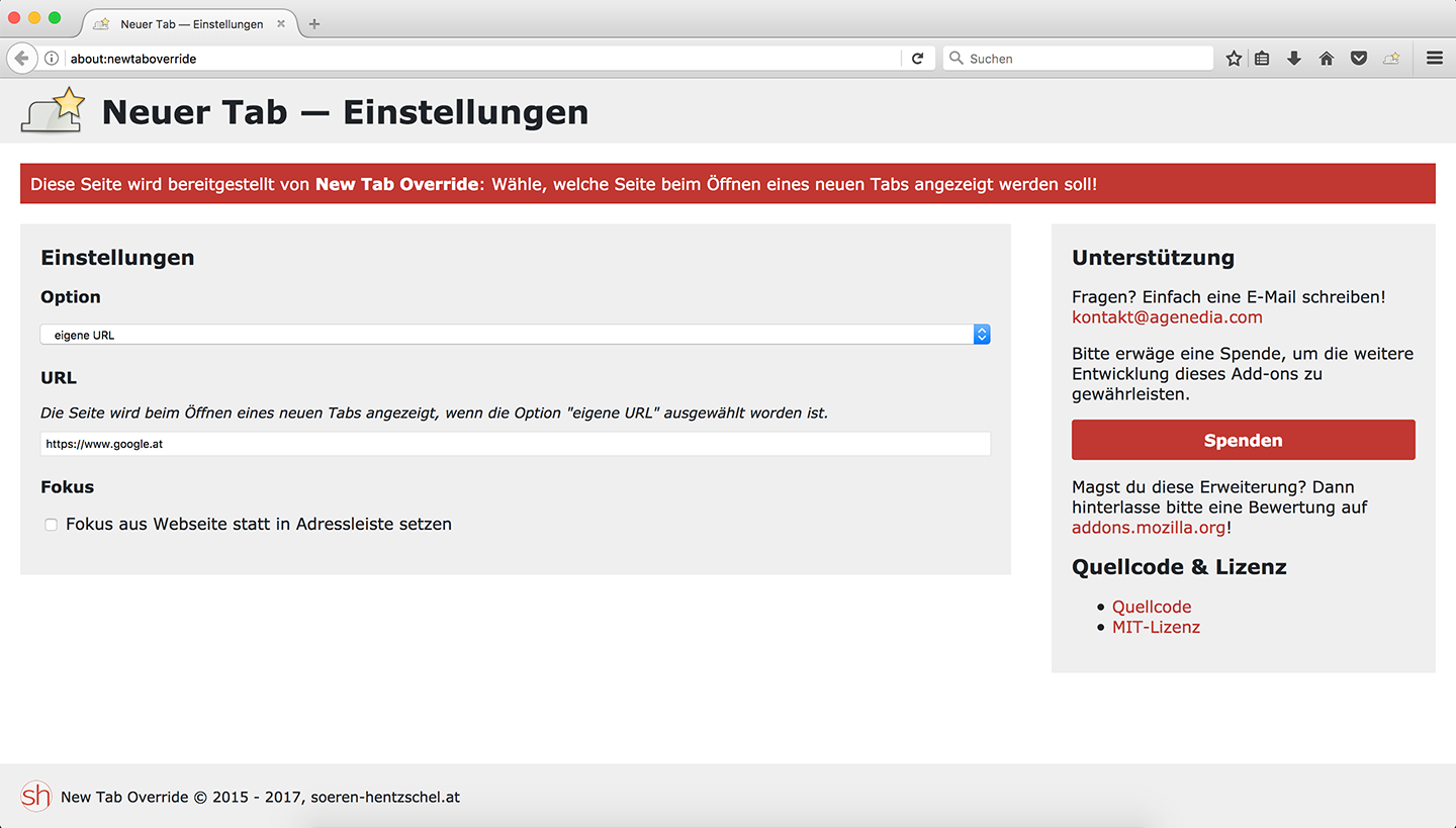 Übersetzer gesucht! New Tab Override 3.0 ist fertig, aber bevor ich die neue Version hochlade und die Neuerungen ankündige, möchte ich noch ein paar Übersetzungen ergänzen. Deutsch, Englisch und Niederländisch sind abgedeckt, aber jede andere Sprache wird gerne genommen. Ausgehend von den aktuellen Benutzerzahlen sind das die wichtigsten noch fehlenden Sprachen in absteigender Priorität: Französisch, Italienisch, Russisch, Spanisch.