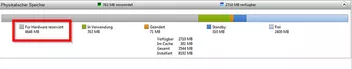 Es scheinen 1,5 gb zugewiesen zu sein, was man vertreten kann, aber nicht die 4gb erklärt die gesperrt sind.