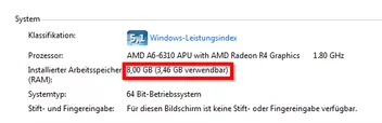 • Habe mir vor kurzem einen günstigen Lenovo Laptop G50 gekauft (Neuware), bei dem Windows 7 Pro 64bit vorinstalliert ist sowie ein Arbeitsspeicher von 8GB verbaut ist. Was mich nun wundert ist, dass von den 8 GB lediglich 3,46 GB für Windows zur Verfügung stehen. Der Rest ist angeblich "für Hardware reserviert". (s. screenshots). Meine Vermutung geht dahin, dass die "schwächliche" Grafikkarte alles einheimst. Die Problematik habe ich auch schon in einem Windows 7-Forum vorgetragen, siehe hier: