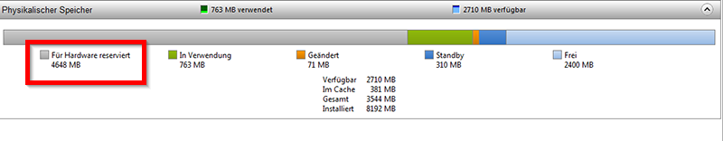 Arbeitsspeicher ist "für Hardware reserviert" (Windows7)