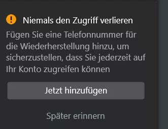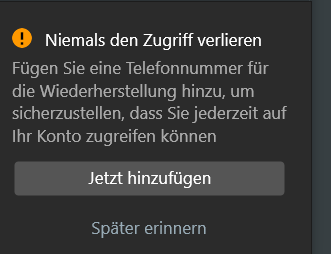 Ich habe jeweils auf: Später errinnern geklickt.