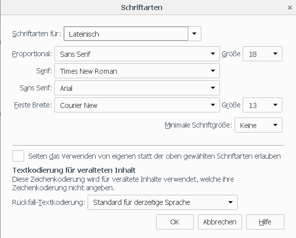 "Seiten das Verwenden von eigenen statt der oben gewählten Schriftarten erlauben"