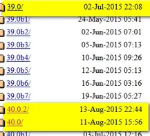 Mhhh, das ist sehr merkwürdig. Irgendwie kann die Seite nicht stimmen. Eine 39er-Version hatte ich gar nicht gehabt. Ich hatte gerade erst - über das automatische Update - auf die 38er (welche auch immer, aber ich bin mir ganz sicher das es die 38.0.8 war) geupdatet. Zwei, drei tage später kam die automatische Info 40.0 (auch die gibt es auf der Seite nicht. Die habe ich aber nicht gleich geupdatet und ein oder zwei Tage später kam die 40.0.2 - mit der habe ich dann noch ein paar Tage gewartet, bis ich sie installiert habe.