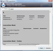 Ich habe versucht einen Ordner in KeePass als "Customizable HTML File" zu exportieren, aber hier werden nur die Ordner aus KeePass importiert, nicht die Lesezeichen.