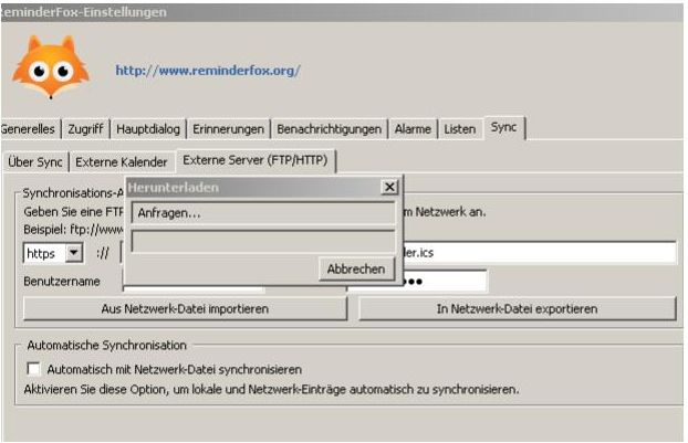 bis zum Abbrechen. Es sollen Daten von einer WEBDAV Adresse geladen werden.
