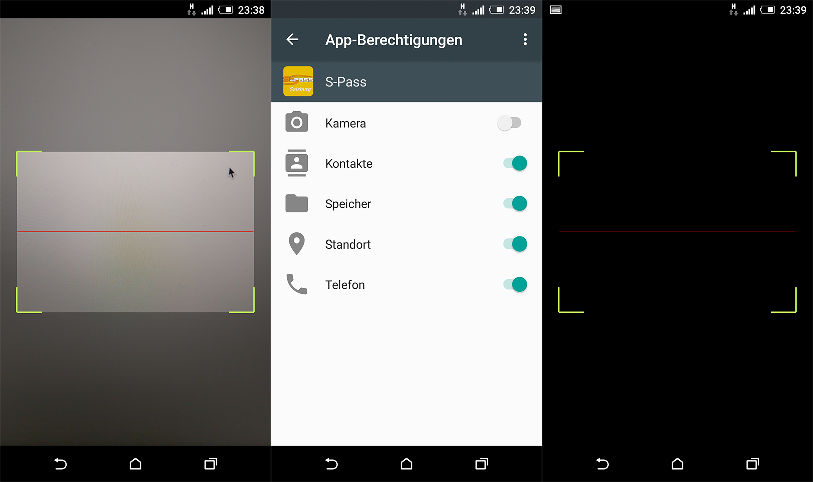 , wenn du es wissen willst), von der ich zu 100 Prozent weiß, dass sie nicht für Android 6.0 speziell angepasst worden ist. Der QR-Code-Scanner funktioniert einwandfrei - bis ich die Berechtigung für die Kamera deaktiviere, dann ist der Bildschirm nur noch schwarz.Externer Inhalt www.youtube.comInhalte von externen Seiten werden ohne deine Zustimmung nicht automatisch geladen und angezeigt.Durch die Aktivierung der externen Inhalte erklärst du dich damit einverstanden, dass personenbezogene Daten an Drittplattformen übermittelt werden. Mehr Informationen dazu haben wir in unserer Datenschutzerklärung zur Verfügung gestellt.Soll ich dir auch noch Screenshots machen, damit du mir glaubst, was ich zu 100 Prozent weiß und was ich belegen kann?