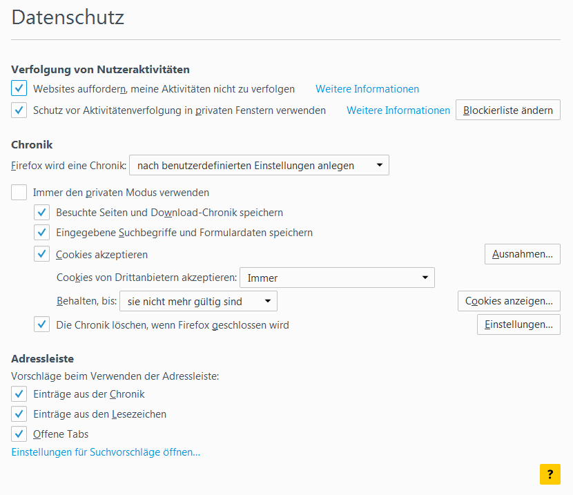 seit der Firefox-Version 43 habe ich das Problem, dass die Autovervollständigung von Adressen nicht mehr funktioniert. Also bspw. bei der Eingabe von "we" hat Firefox bei mir immer automatisch "web.de" daraus gemacht - jetzt steht in der Adressleiste auch nur ein "we" und ich muss immer einmal die Pfeiltaste nach unten betätigen, um auf den Eintrag von web.de zu gelangen. Ist zwar kein Weltuntergang, aber vorher war es doch um einiges angenehmer.