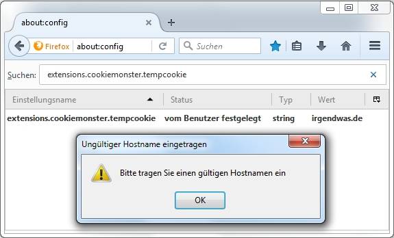 Ich benutze Firefox mit drei unterschiedlich kofigurierten Profilen. Das Funktioniert mittlerweile seit drei Jahren auch ganz gut. Vor zwei Tagen ist jedoch einfach so aus dem Nichts folgendes Problem entstanden: Immer wenn ich in dem einen Profil Firefox schließe kommt folgende Meldung: "Bitte tragen Sie einen gültigen Hostnamen ein". Ich kann nur "ok" drücken und dann schließt sich Firefox. Natrülich finde ich es komisch, dass diese Meldung einfach aus dem nichts kommt und habe versucht herauszufinden wie ich sie los werde bzw. was ihre Ursache ist. Und ich habe echt vieles Probiert. FoxyProxy ausgestellt/deintsalliert, sämtliche Interneteinstellungen/Fritzboxeinstellungen überprüft. Die halbe about:config von Firefox durchgearbeitet. Gerade laufen noch diverse Virenscanner etc. übers System, aber bis jetzt alles ohne Erfolg. Natürlich mache ich mir gerade Sorgen, dass sich ein Trojaner eingeschlichen hat, der irgendwie den DNS-Server ändert oder ähnliches. Allerding habe ich dafür noch keinen Beweis gefunden