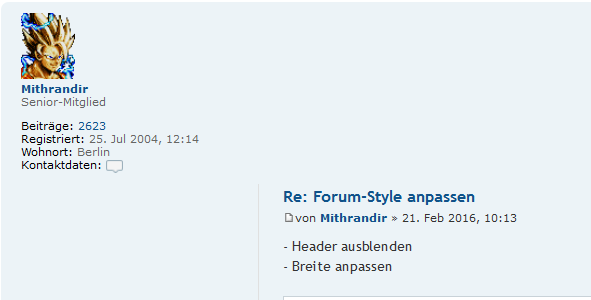 Bislang nutzte ich folgenden Style um das Forum an meine Wünsche anzupassen: