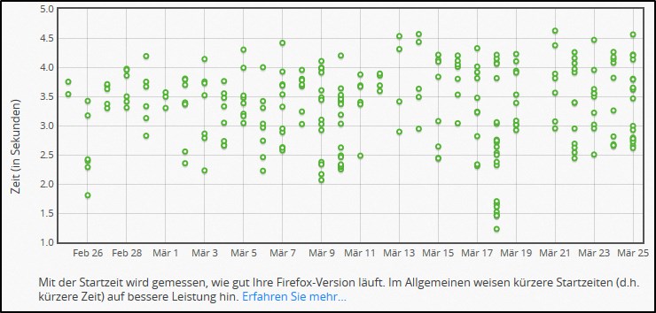 Die linken Textbereiche sind sofort da. Nur die Tabelle rechts mit den Startzeiten dauerte etwa 15 Sek. bis sie erschien und sieht etwas kurios aus. Ich starte Firefox etliche Male am Tag.
