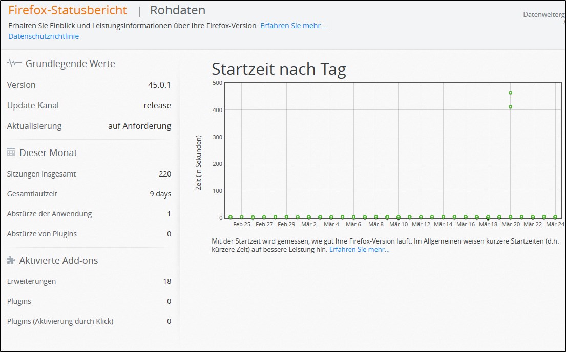 Vorhin habe ich mal aus Spielerei about:healthreport eingegeben und eine Unstimmigkeit gefunden.