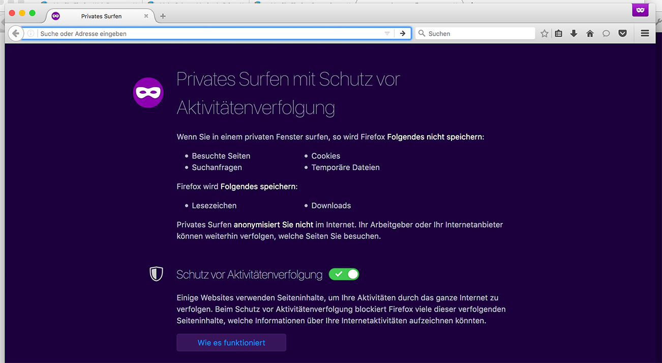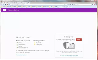 • Wenn die oben erwähnte Seite , about:privatebrowsing, die richtige Seite ist,
