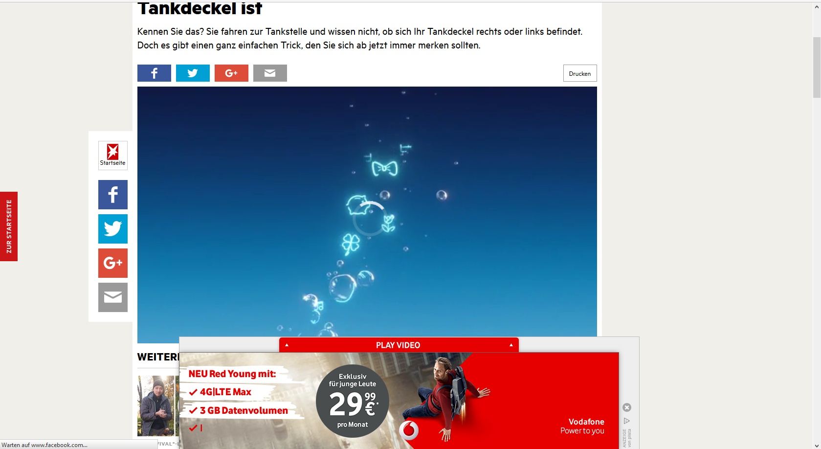 Die Vodafone Werbung schob sich von unten ins Bild und überdeckte dabei einen Teil des Filmchens von der Seite stern.de.