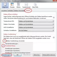Wenn ich das bei "Allgemein/Spezial" unten umschalte, öffnet die Sidebar überhaupt nicht.