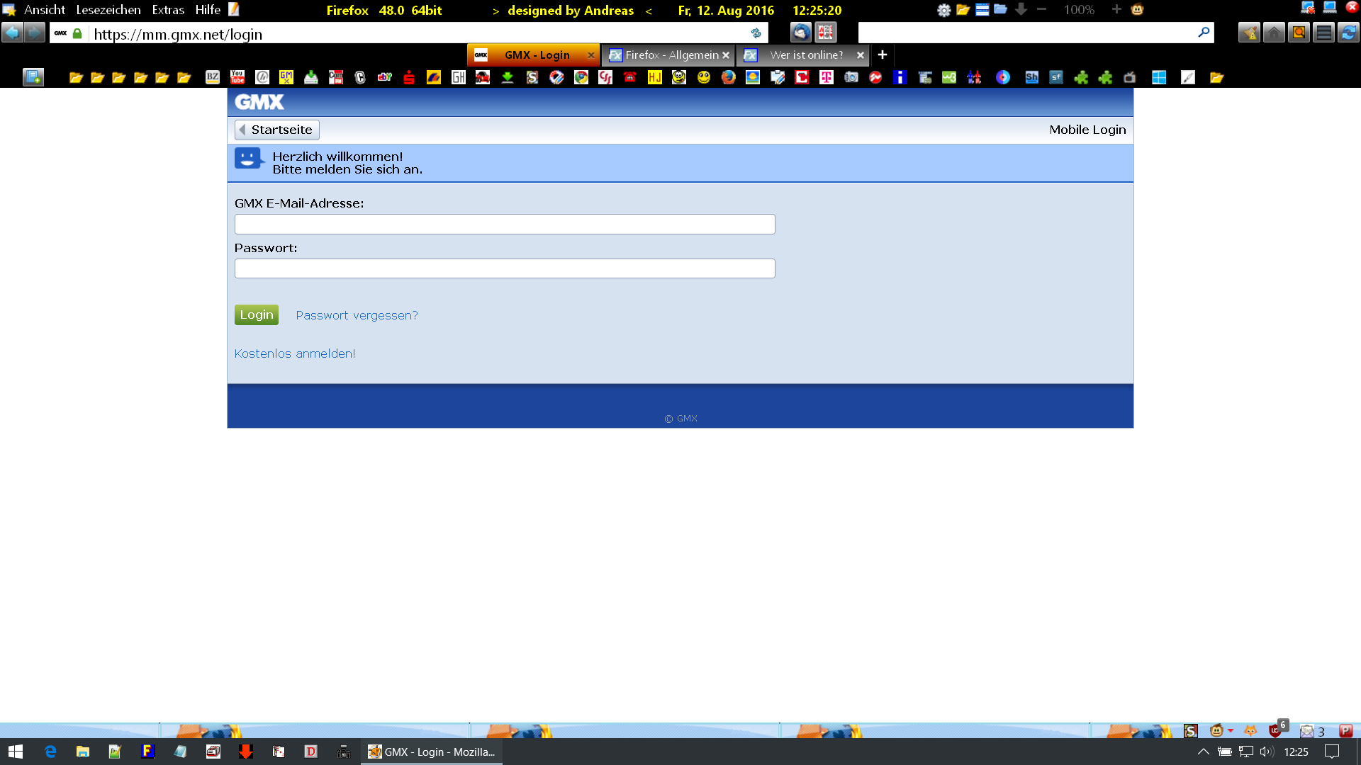 Wenn ich mich bei https://mm.gmx.net/login an meinem Windows 7 Rechner einlogge, lande ich nicht mehr wie gewohnt auf der "mobilen Seite" von GMX, sondern auf der gewöhnlichen Seite, die ich auch erreiche, wenn ich mich über http://www.gmx.net einlogge.