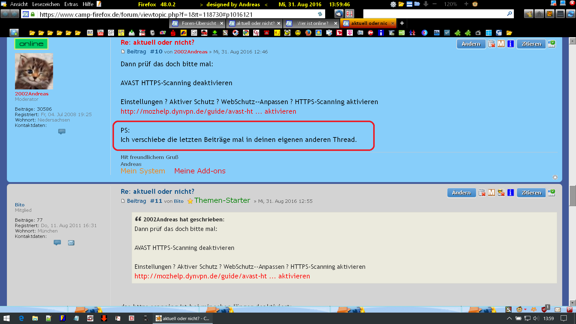 Ich kann dort im Beitrag viewtopic.php?f=1&t=118730#p1016121 keinen Verweis erkennen (außer dem vom Mozilla Hilfe).