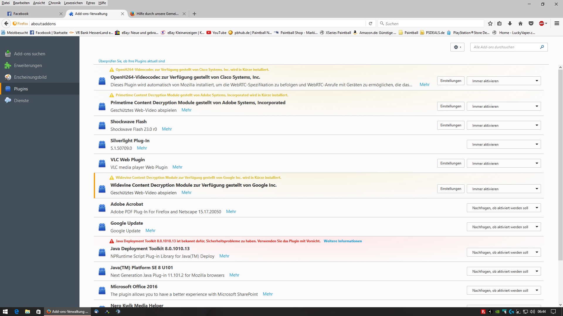 ich habe bei meinem Firefox auf dem PC das Problem das ich einige Plugins habe, hauptsächlich Videoplugins