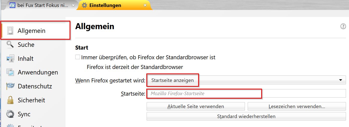 wenn ich den Firefox 49.0.1 Starte ist der Fokus in der URL Leiste also so das man direkt eine URL eingeben kann mit dem kleinen blinkenden hickant Balken.