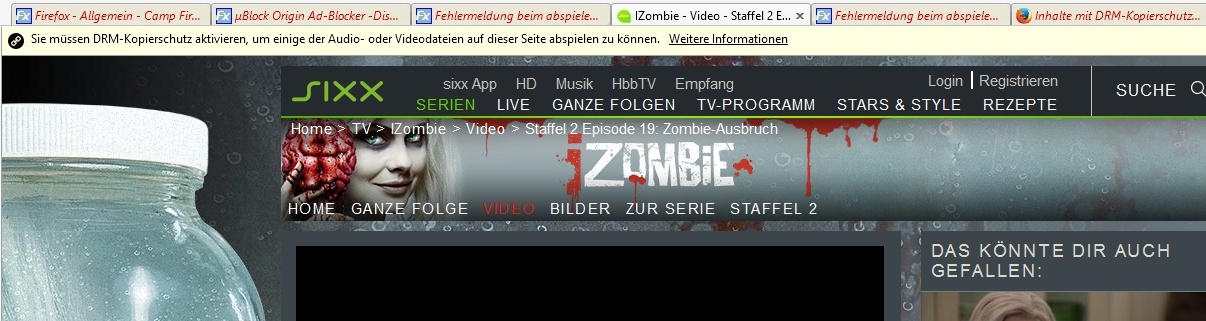 Fehlermeldung beim abspielen von Videos auf sixx.de