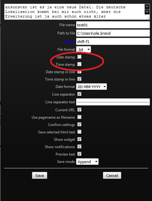 Oder so: Text kopieren, Notepad öffnen, abspeichern. Beides ist mir zu umständlich.