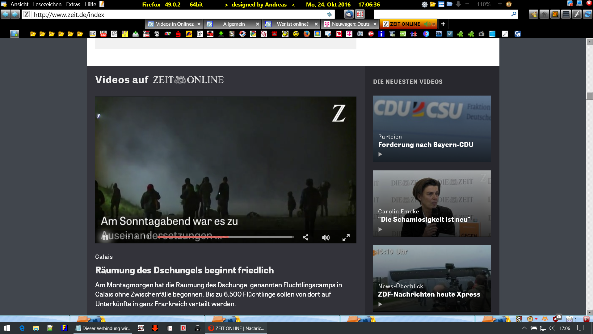 ich kann mit Firefox problemlos Viedos im " DER SPIEGEL" + in der FAZ abspielen, nicht aber in "DIE ZEIT". Da höre ich nur den Ton. Das Problem habe ich aber nur mit Firefox, mit Opera etc. nicht. Wäre schön, wenn mir jemand helfen könnte. Holmwitt