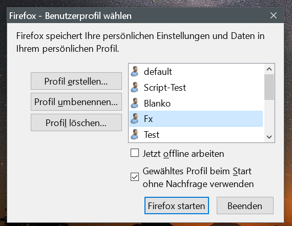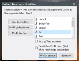 Zitat von Abendstern2010Sry wenn ich was überlesen-oder falsch verstehe- habe aber Profilmanager - 2 Instanzen gleichzeitig starten das geht doch gar net,Wenn ich den Fuchs Starte in Version vxx dann geht nix weiter mit Fuchs neu starten.