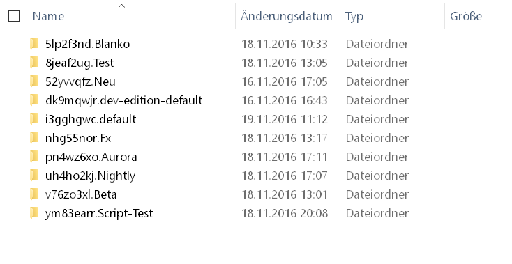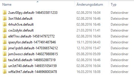 Wenn ich unter %APPDATA%\Mozilla\Firefox\Profiles\ mein Profil aufrufe, erscheint da nicht nur eins, sondern eine ganze Menge!