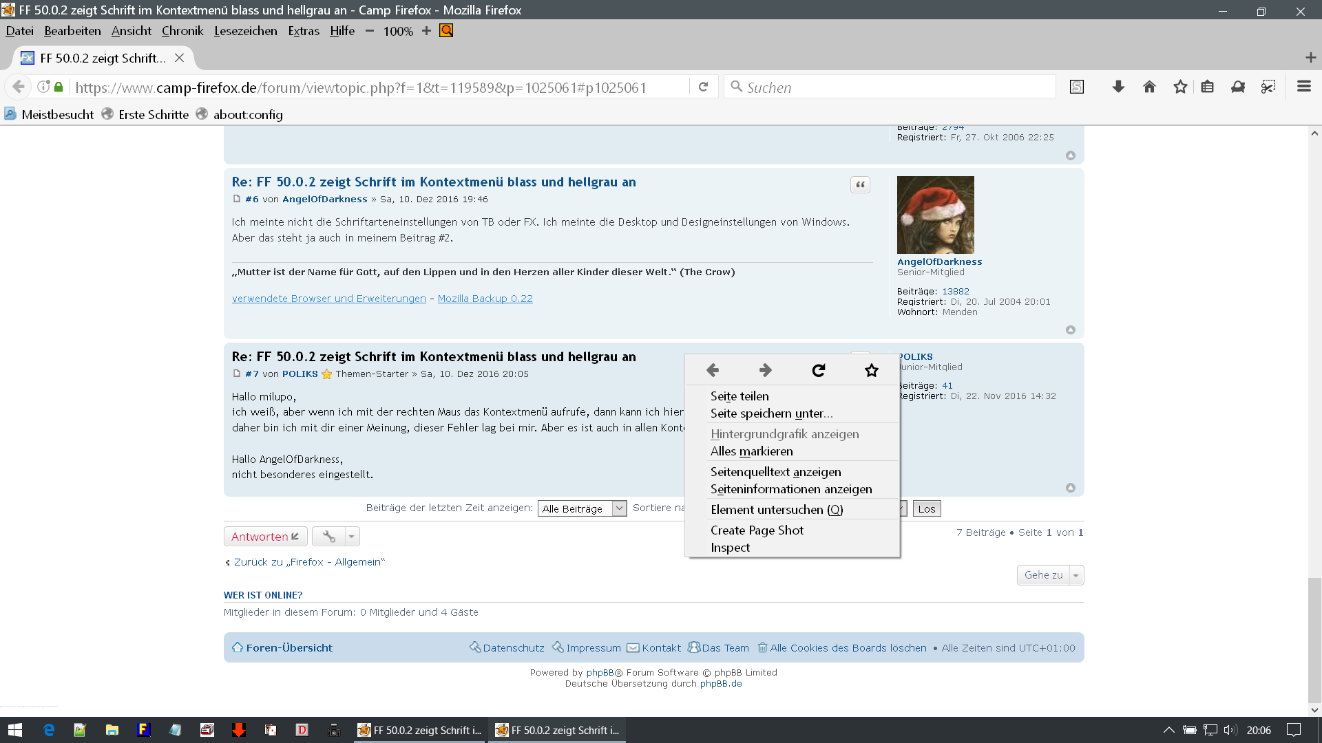 [gelöst] TB & FF 50.0.2 zeigt Schrift im Kontextmenü blass und hellgrau an