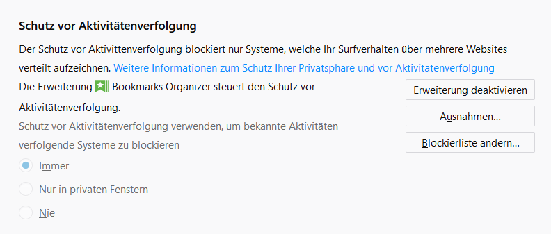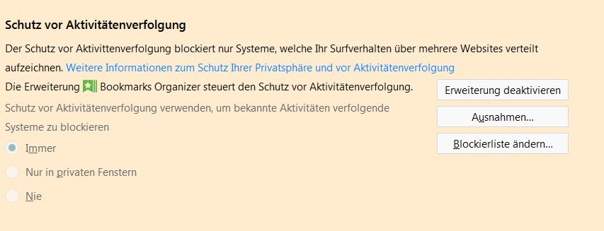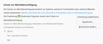 Ahh, das ist es. Wenn ich ihn deaktiviere (also nur in privaten Fenstern aktiviere) , dann gibts auch keine Fehler bei den Amazon-Lesezeichen.