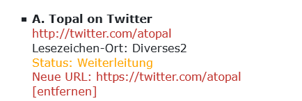 • Erkannte Weiterleitungen können nun per Klick für ein einzelnes Lesezeichen automatisch korrigiert werden.