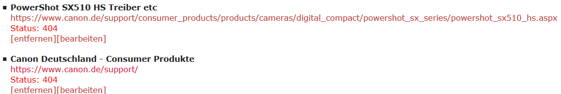 - Statt "404" als Status wird nun "Nicht gefunden" ausgegeben, da damit mehr Nutzer etwas anfangen können.
