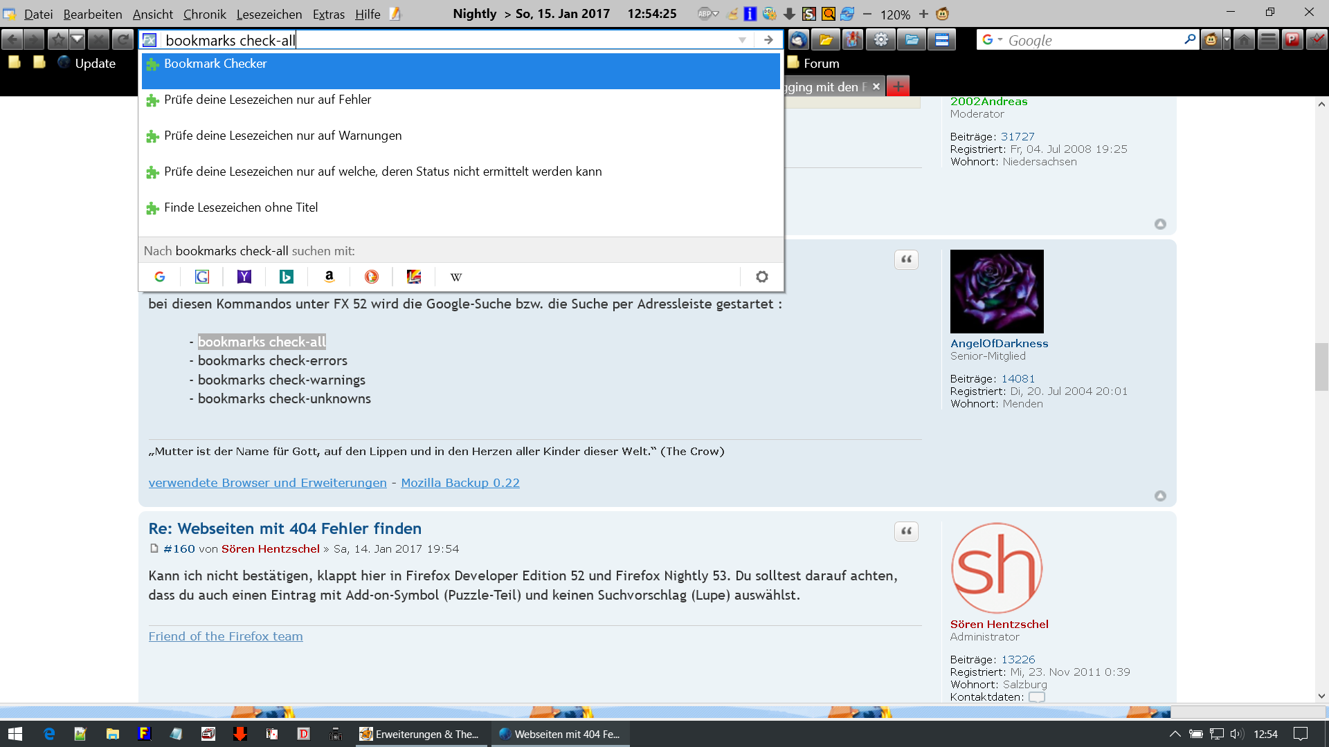 - Dieses Feature kann auch über die Adressleiste direkt gestartet werden: "bookmarks duplicates" (benötigt Firefox 52 oder höher).