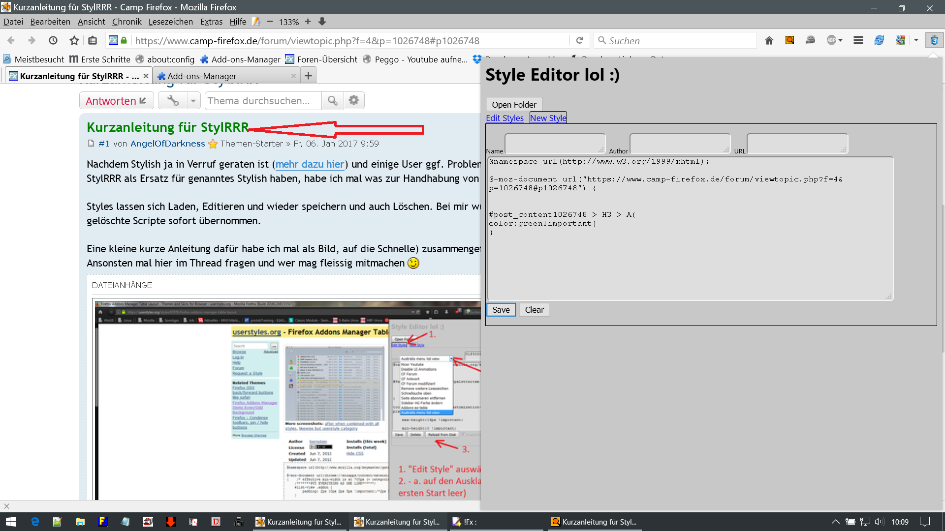 Nachdem Stylish ja in Verruf geraten ist (mehr dazu hier) und einige User ggf. Probleme mit der Handhabung des Add-ons StylRRR als Ersatz für genanntes Stylish haben, habe ich mal was zur Handhabung von StylRRR heraus gefunden.