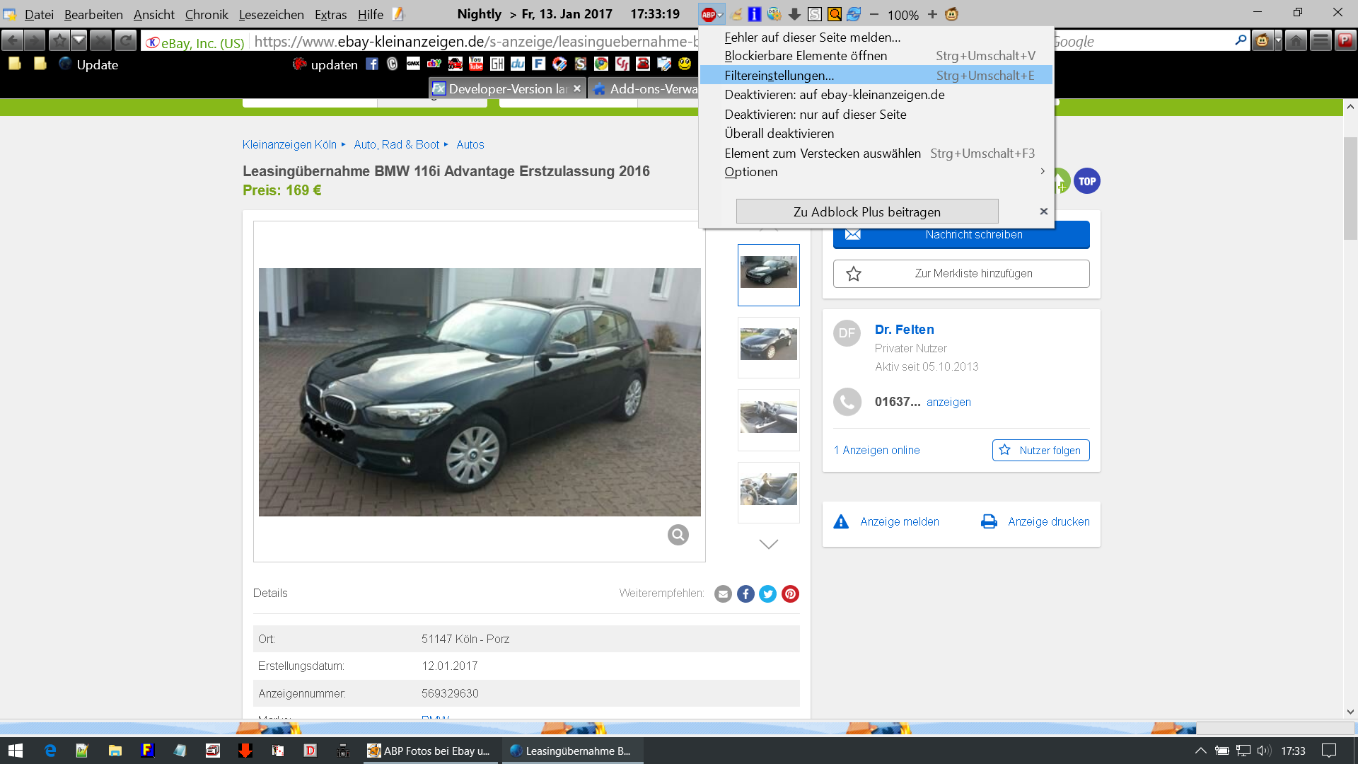Ein Problem, seit heute. Bei aktiviertem ABP werden bei Ebay, Ebay Kleinanzeigen usw die Fotos in den Anzeigen nicht mehr angezeigt. Schalte ich ABP und aktualisiere die Seite klappt alles wie gewohnt und die Fotos erscheinen.