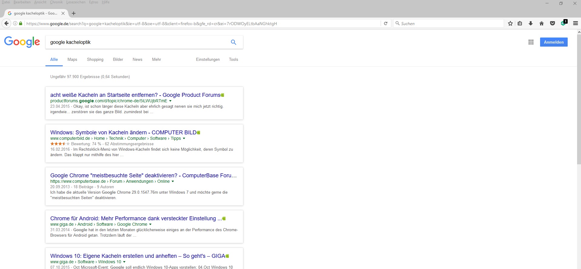 In Chrome und Internet Explorer sieht die google Suche Normal aus also als Liste.