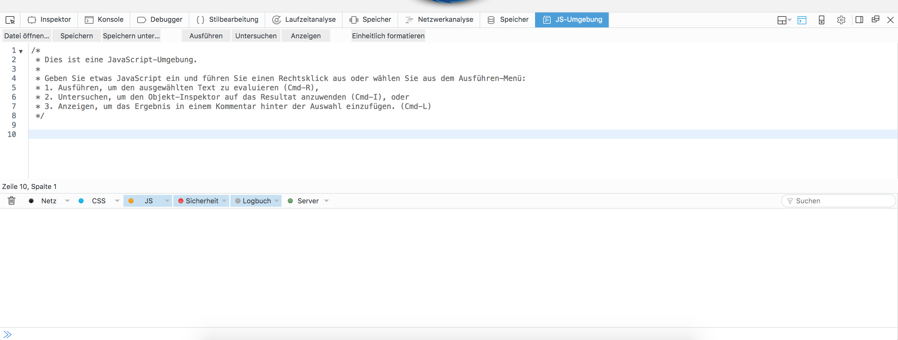 Auch gibt es die JS-Umgebung, die man in den Einstellungen als Reiter in den Devs aktivieren kann. Doch dieses nimmt wieder nur den gesamten Bereich ein, so dass man keine LOG-Ausgaben verfolgen kann ![]()