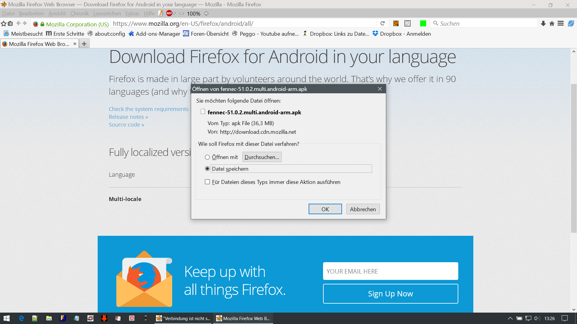 Beim Versuch eine der Dateien herunterzuladen bekomme ich ein Zertifikatsproblem angezeigt.